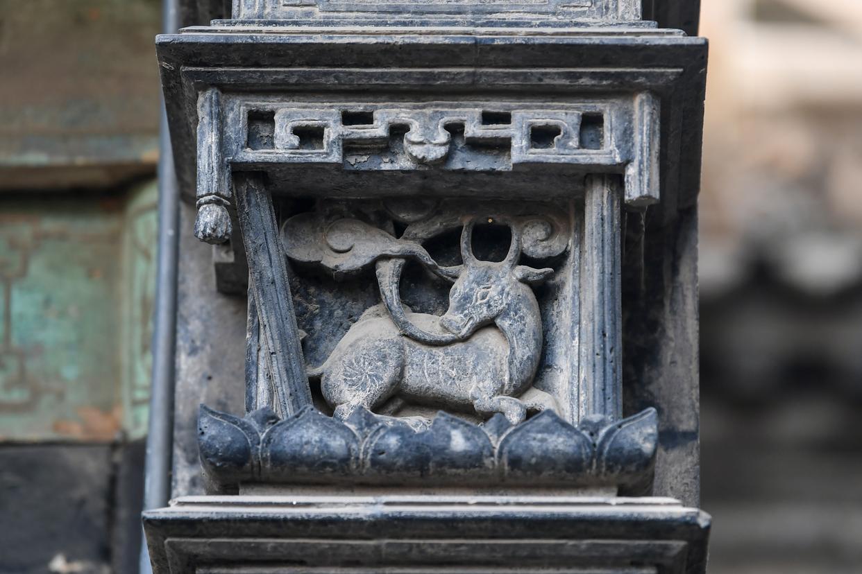 这是12月11日在山西省祁县乔家大院拍摄的砖雕牛。