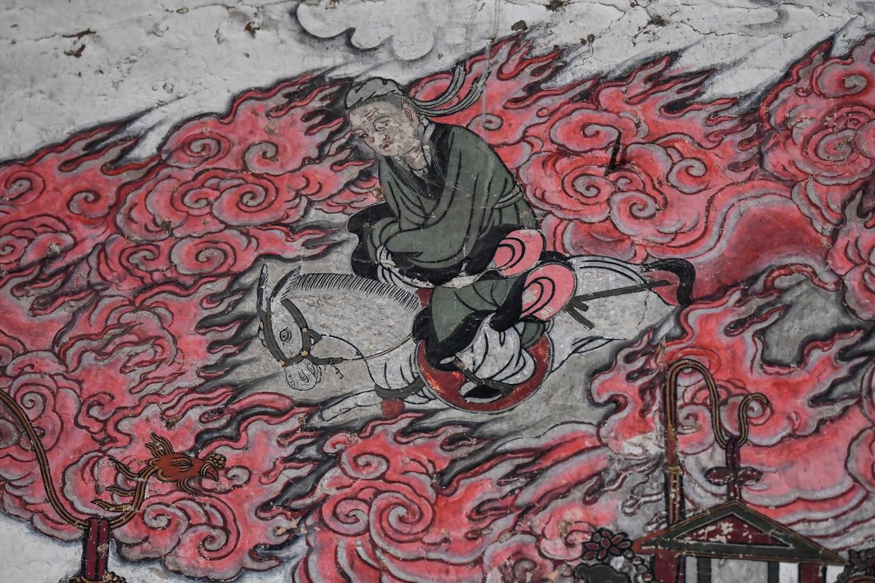 这是12月3日在山西省高平市仙翁庙拍摄的壁画中的马。
