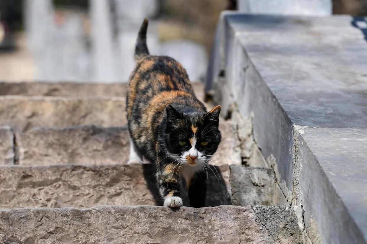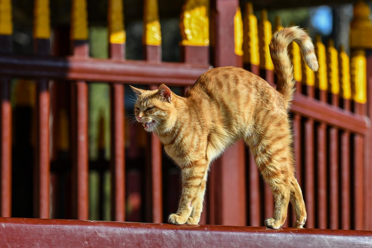 我们在游览古建筑时常遇到猫咪