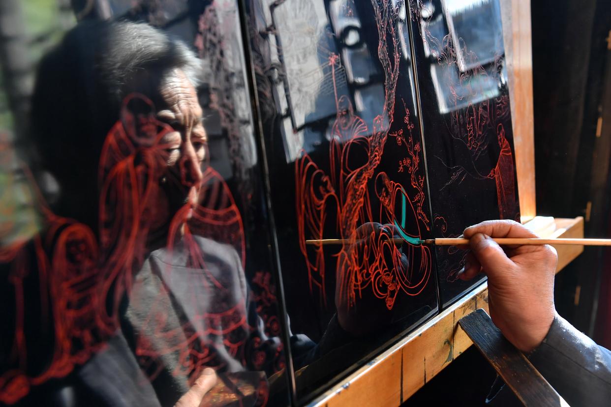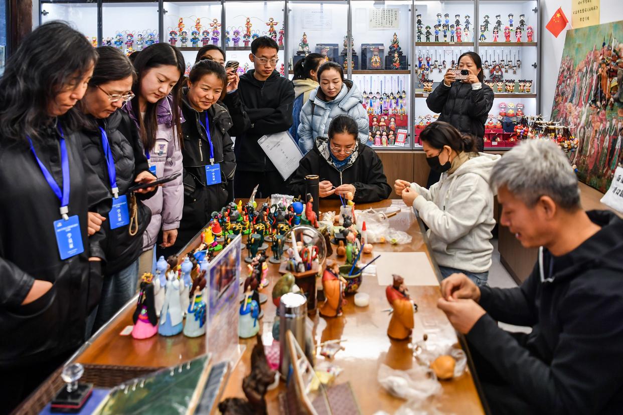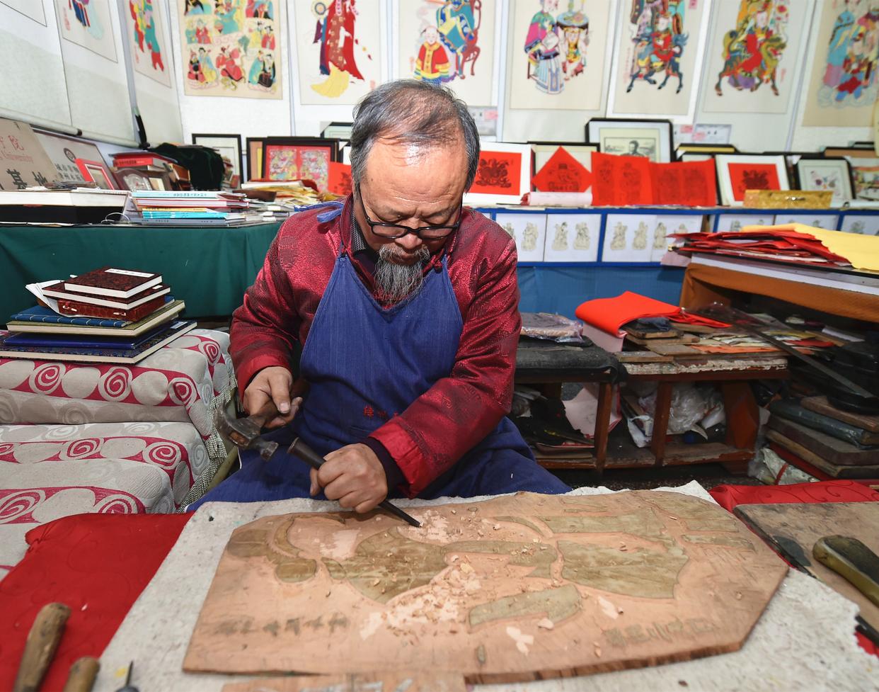 山西省非遗传承人在进行创作。记者:曹阳
