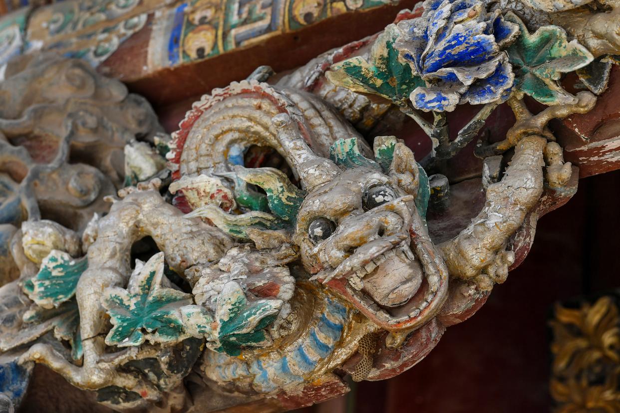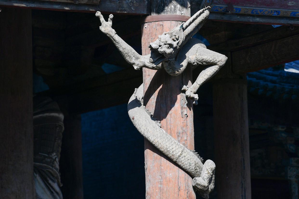 这是12月2日在山西省晋城市关帝庙拍摄的木雕龙。