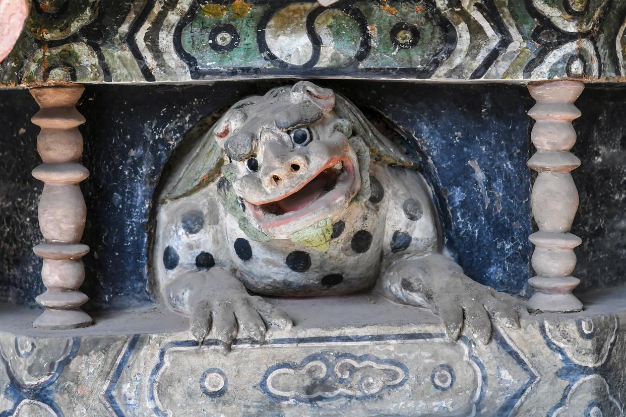 这是12月2日在山西省晋城市青莲寺拍摄的彩塑狮子。吉祥文化始终贯穿于中华文化的发展脉络