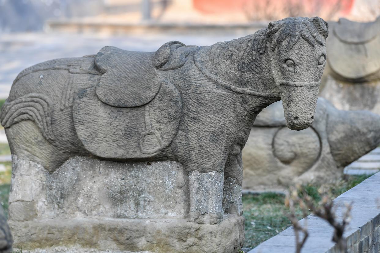 这是12月10日在太原市双塔寺拍摄的石马。
