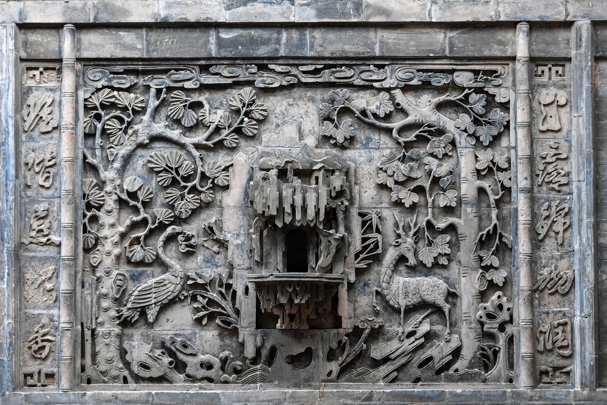 这是12月11日在山西省祁县乔家大院拍摄的砖雕。
