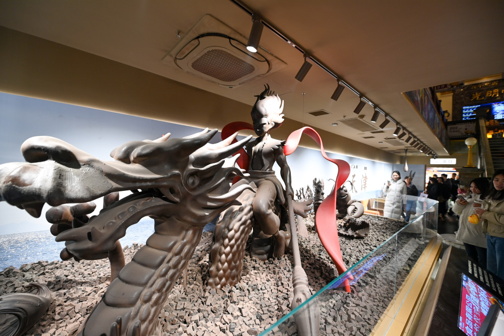 近日,位于天津市和平区金街步行街的天津巧克力博物馆正式开放。馆内陈列20余件巧克力雕塑作品,使用巧克力总量达10吨,由雕塑师纯手工打造。巧克力雕塑作品中既有“天津之眼”摩天轮、天津站等城市地标,又有哪吒闹海等故事场景,吸引众多游客参观打卡。