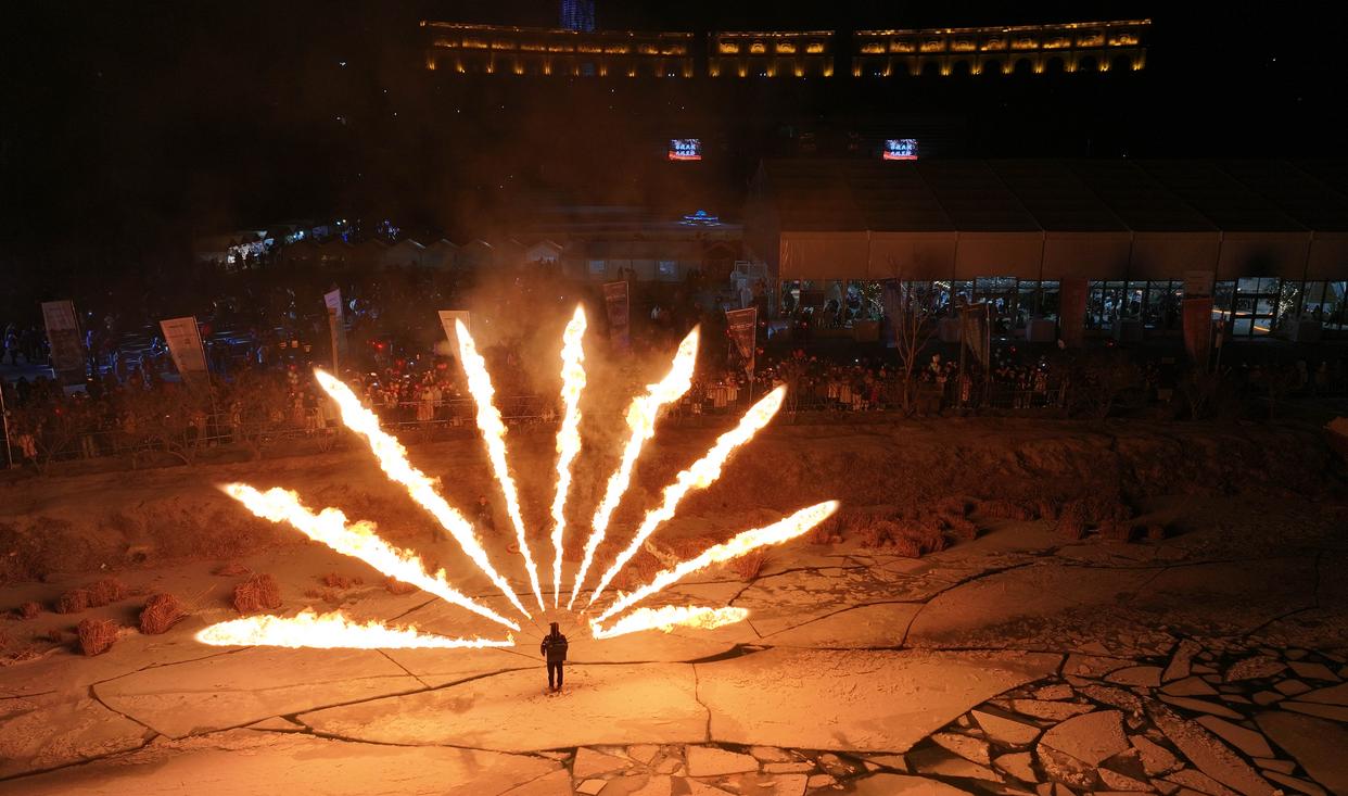 2025年12月31日晚,人们在银川文旅集团览山公园参与跨年活动(无人机照片)。新华社记者 王鹏 摄