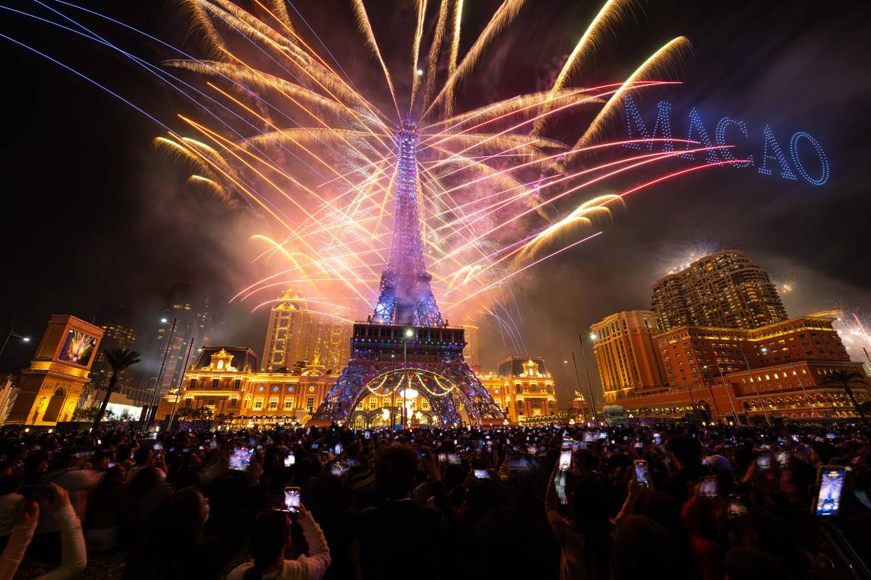 2026年1月1日凌晨,人们在澳门路氹金光大道观看新年烟花汇演。新华社发(张金加摄)