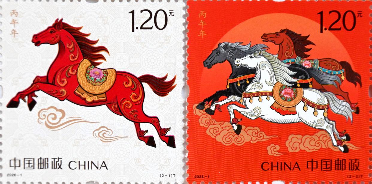 2026年1月5日,中国邮政发行《丙午年》特种邮票一套2枚,面值均为1.2元,图案分别为“驰跃宏图”和“万骏臻福”。
