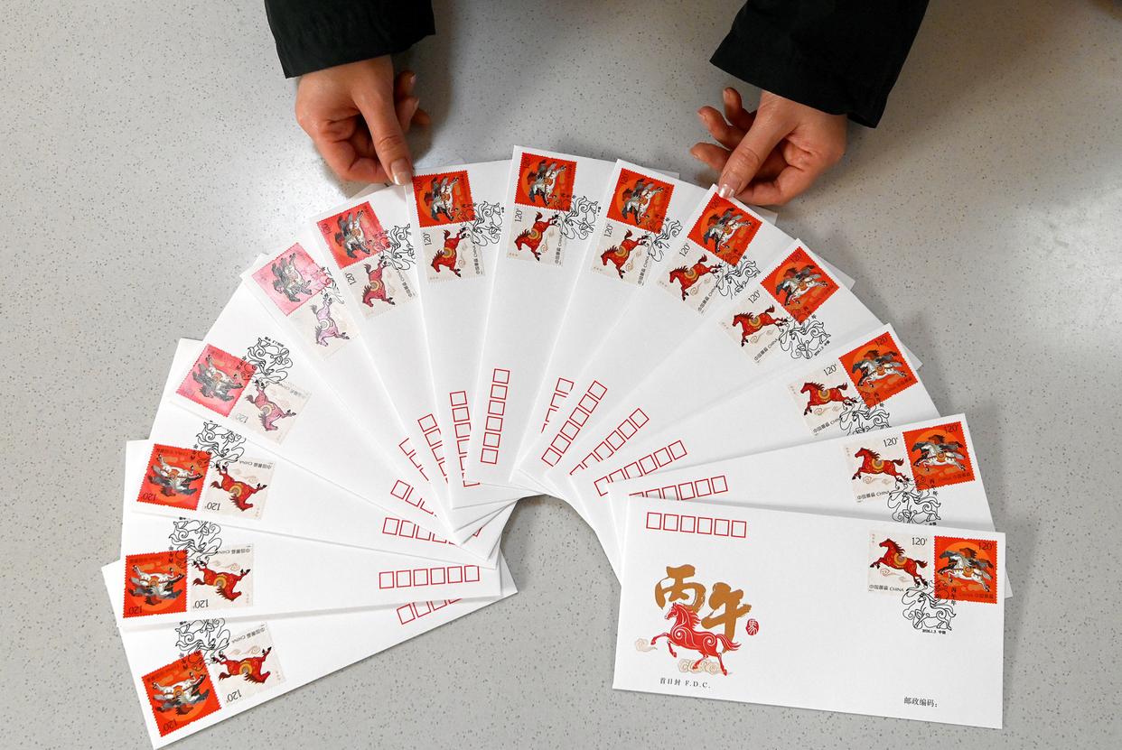 ↑2026年1月5日,在中国邮政集团有限公司河北省邯郸市分公司拍摄的《丙午年》特种邮票首日封。CICPHOTO/郝群英 摄
