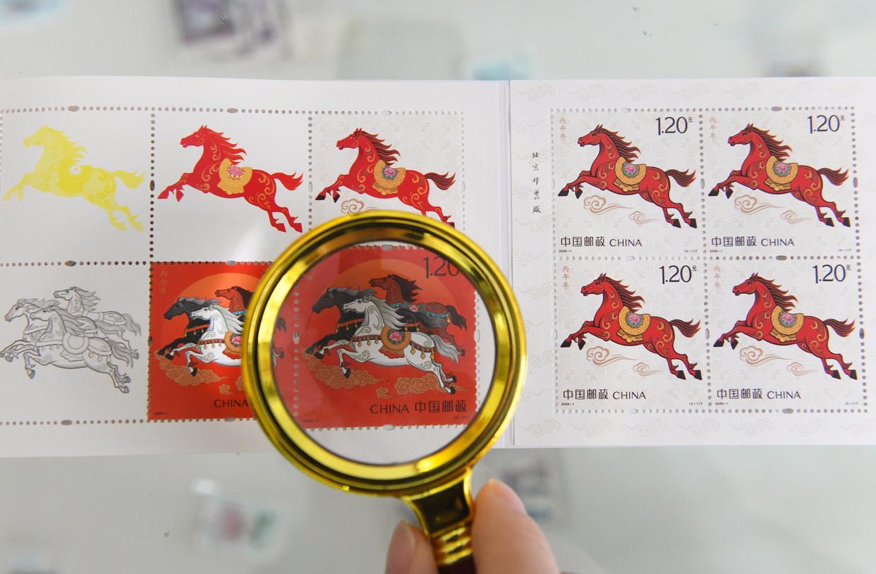 ↑2026年1月5日,在中国邮政集团有限公司河北省新乐市分公司拍摄的《丙午年》特种邮票。CICPHOTO/贾敏杰 摄