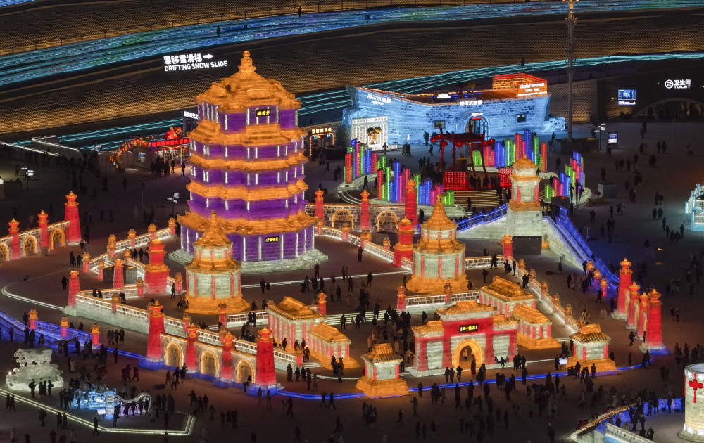 这是1月5日拍摄的哈尔滨冰雪大世界园区(无人机照片)。新华社记者 王松 摄