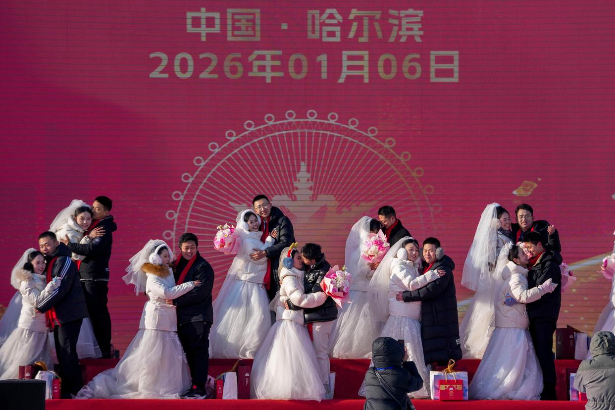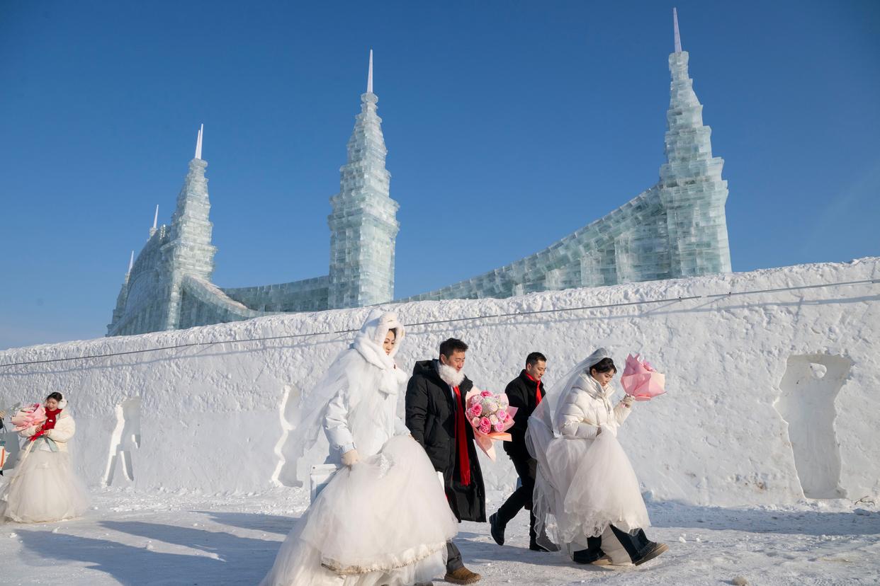1月6日,哈尔滨第四十二届“四季沐歌”公益冰雪集体婚礼在哈尔滨冰雪大世界园区举行。来自全国18个省、自治区和直辖市的42对新人以冰雪为媒,在冰雪童话世界里携手步入婚姻殿堂。哈尔滨公益冰雪集体婚礼作为哈尔滨国际冰雪节重要活动之一,已成功举办42届,为来自全球五大洲20多个国家的1362对新人举办了独具特色的婚礼。