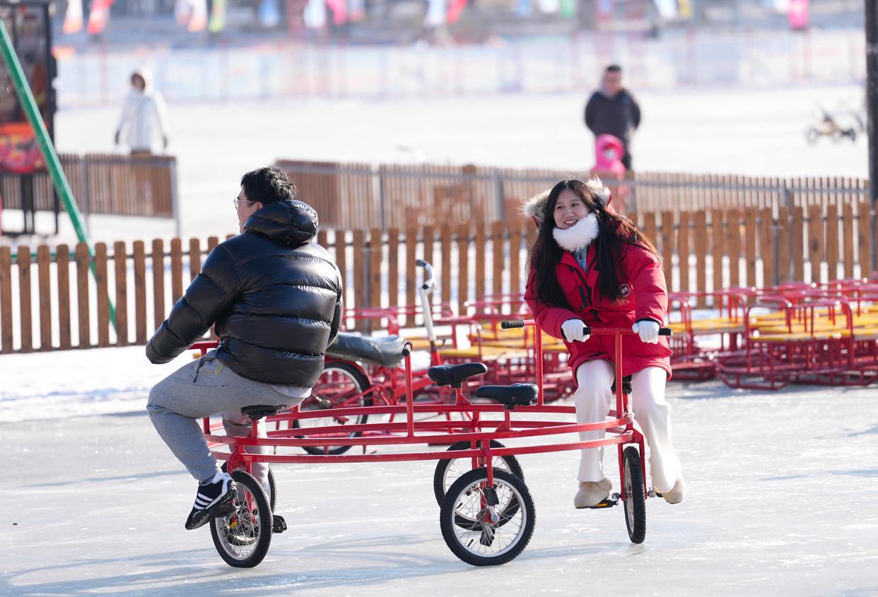 1月5日,游客在长春市肆季南河岸线公园游玩。新华社记者 许畅 摄