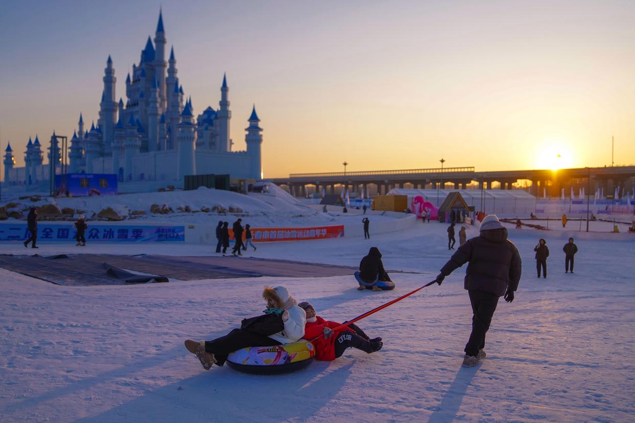 1月5日,游客在长春市肆季南河岸线公园玩雪圈。新华社记者 许畅 摄