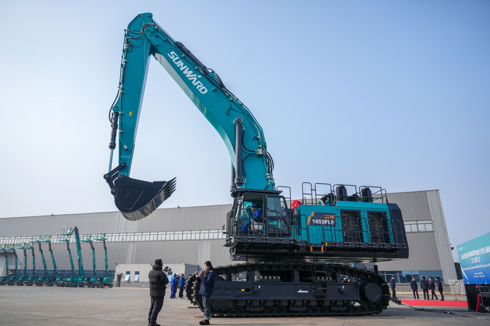 这是1月6日在长沙山河工业城拍摄的山河智能SWE1650FLR加长臂挖掘机。新华社记者 陈思汗 摄