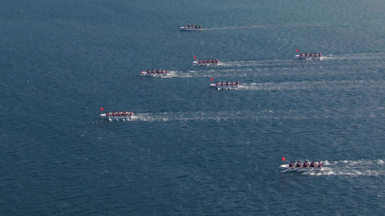 1月4日,南部战区海军某基地组织舢板竞速比武(视频截图)。新华社发(宋浩 摄)
