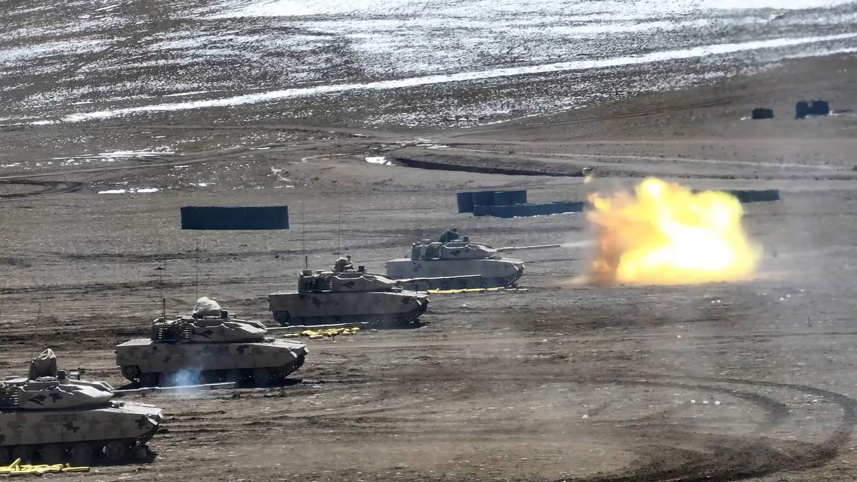 1月6日,西藏军区某部坦克分队按编组进行实弹射击考核。新华社发(曹智 摄)