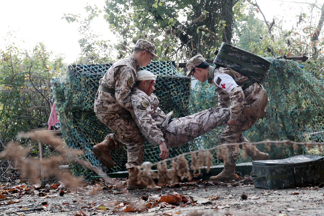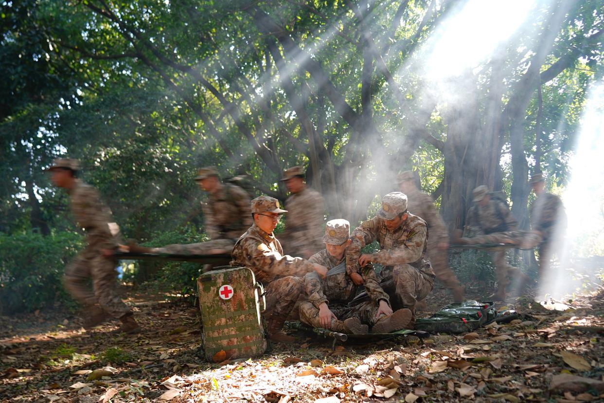 1月4日,联勤保障部队第909医院组织医疗队员开展战场救护技能训练。新华社发(刘永瑜 摄)
