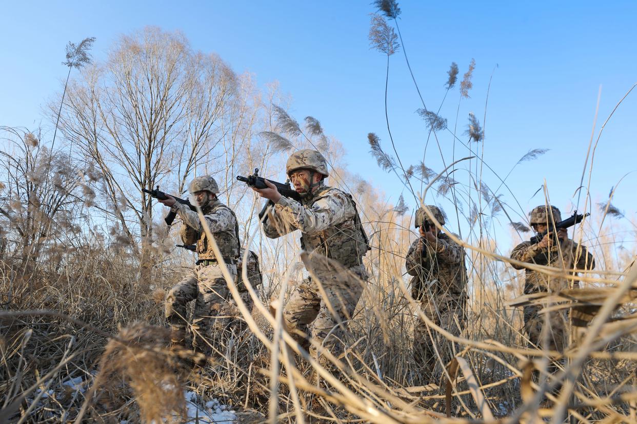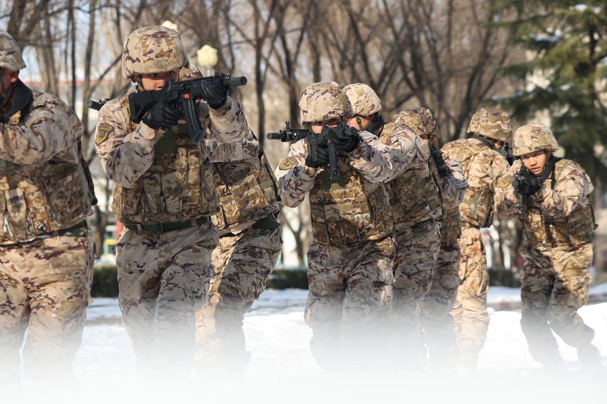 1月4日,武警第一机动总队某支队组织官兵开展战术训练。新华社发(何小根 摄)