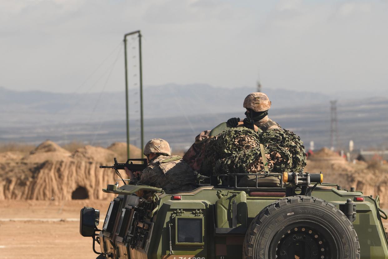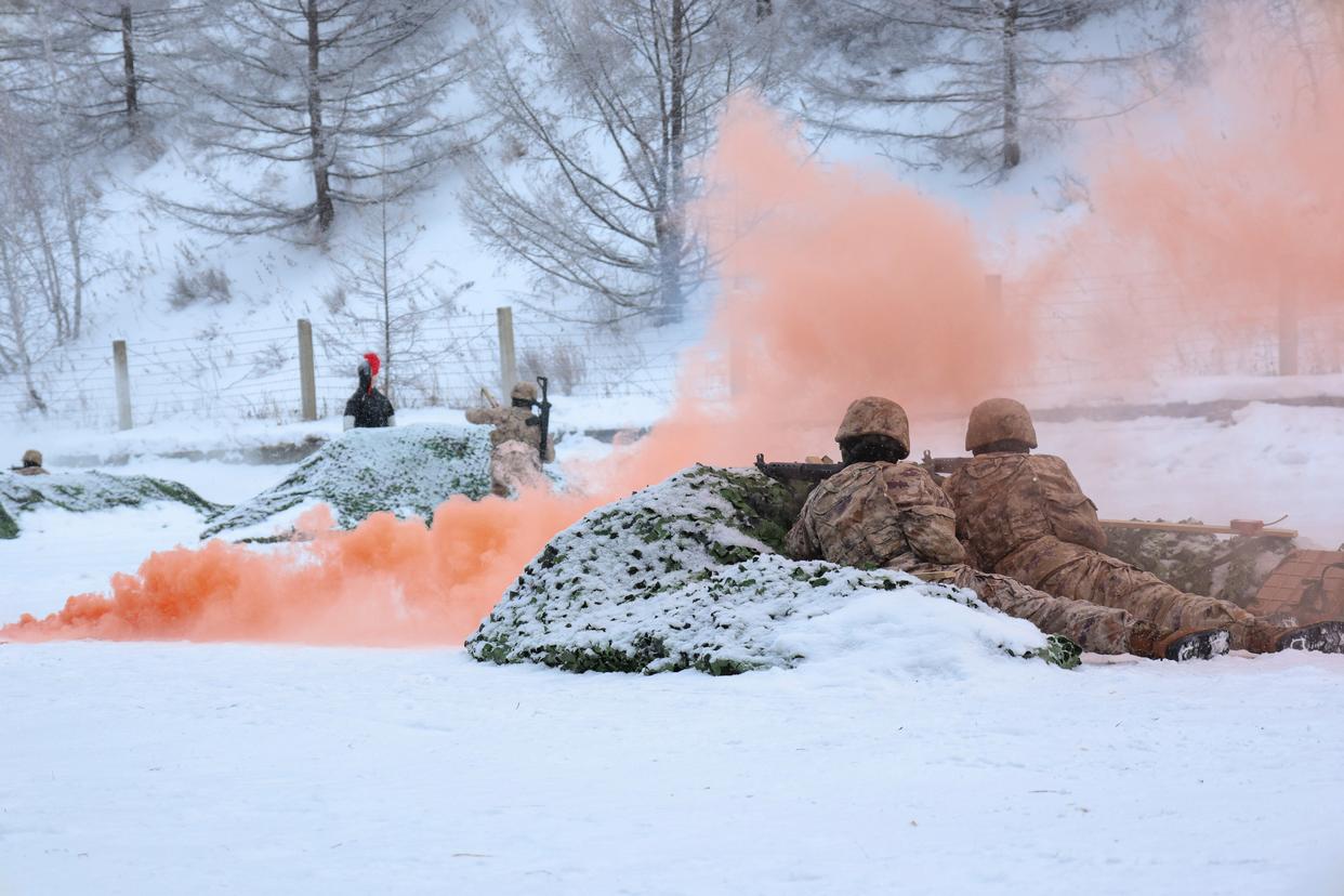 1月4日,武警山西总队忻州支队官兵开展山林地捕歼战斗演练。新华社发(徐佳润 摄)