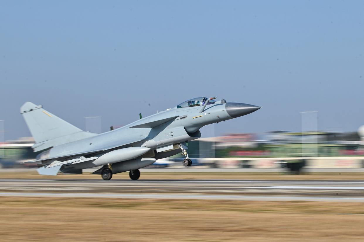 1月5日,东部战区空军航空兵某部组织实战化飞行训练,飞行员驾驶战机加力起飞。新华社发(王紫箫 摄)