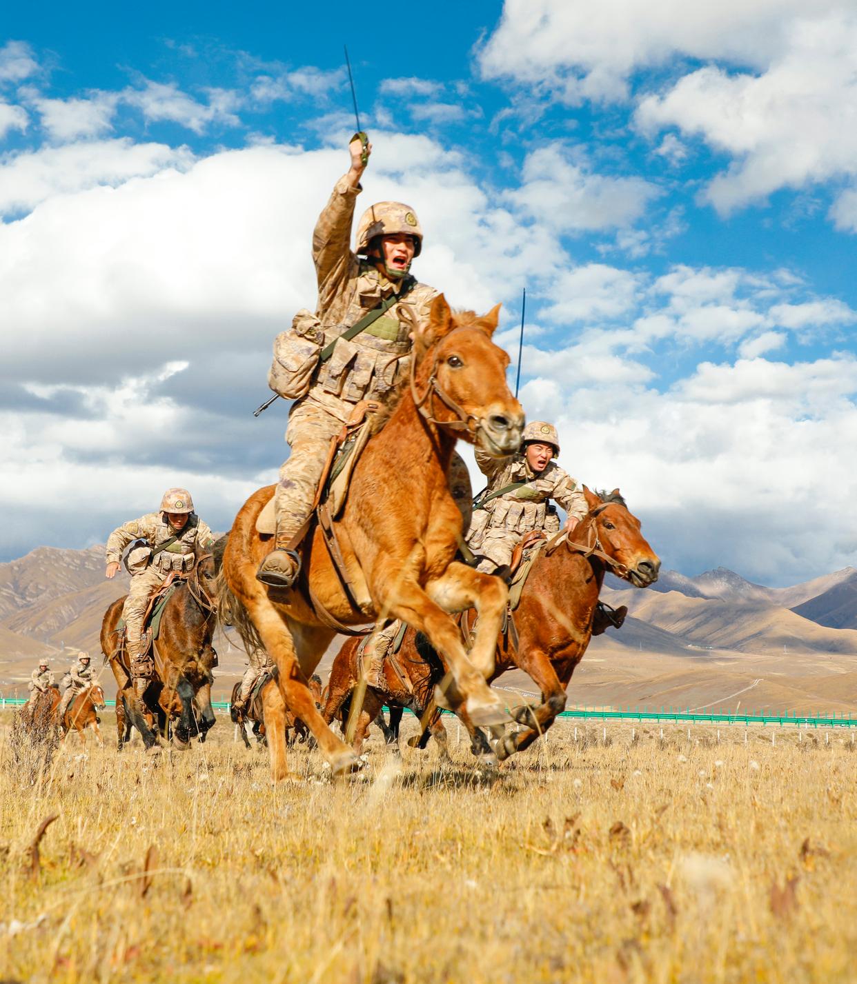1月4日,陆军第76集团军某旅玉树独立骑兵连官兵进行追捕课目训练。新华社发(严楚 摄)