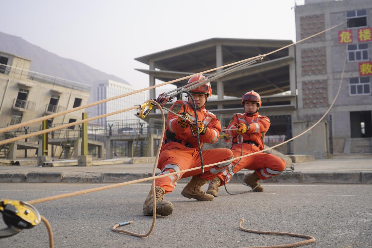 1月4日,武警青海总队机动某支队官兵开展救援演练。新华社发(刘进峰 摄)