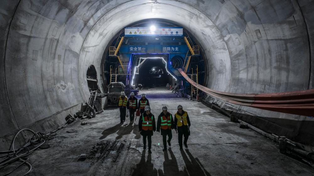 施工人员在隧道内进行巡查,记录温度和监测形变(2025年1月25日摄)。