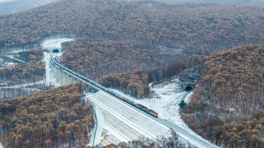 这座全长602米的新建隧道,是我国目前唯一一座新建的“套轨”隧道——在同一隧道内铺设宽轨和标准轨四条轨道,可以满足中俄两国列车在同一线路上通行,极大提升了通关效率。面对复杂地质与施工难题,施工团队大胆创新、攻坚克难,为“东通道”提质增效奠定了坚实基础。