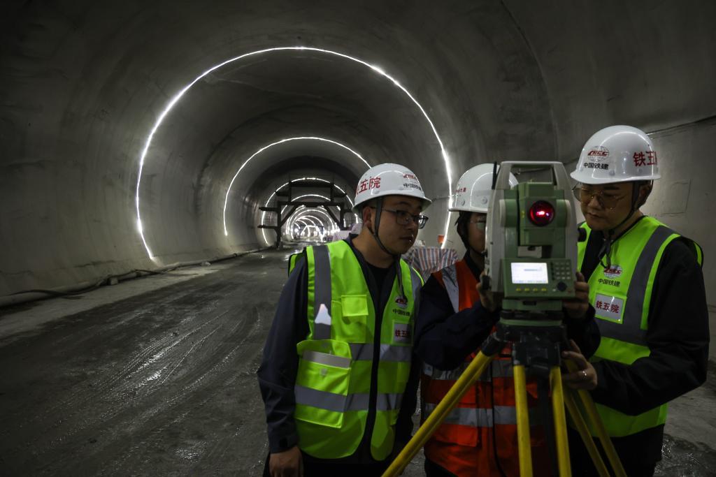 施工人员在新建绥芬河隧道中开展监测作业(2025年5月27日摄)。
