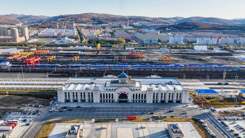 绥芬河站全貌(2024年10月16日摄,无人机照片)。