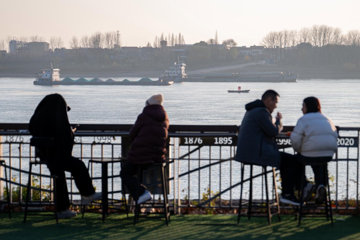 1月7日,游客在湖北省荆州市沙市洋码头文创园休憩。新华社记者 杜子璇 摄