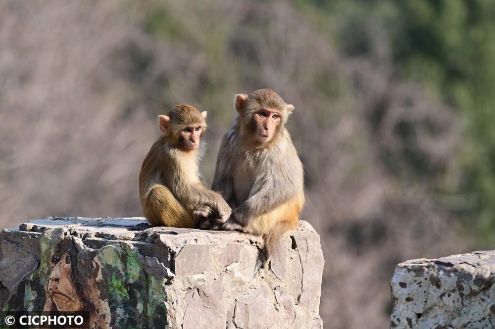 ↑2025年12月18日在河南省沁阳市神农山风景区拍摄的太行猕猴。CICPHOTO/杨帆 摄