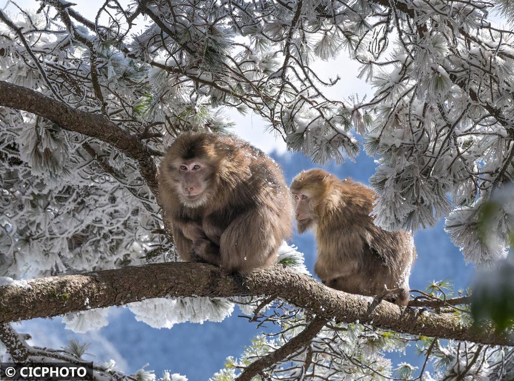 ↑2026年1月2日在安徽省黄山风景区拍摄的黄山短尾猴。CICPHOTO/水从泽 摄