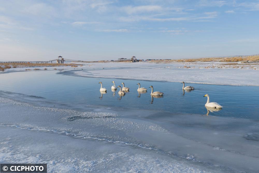 ↑2025年12月17日在新疆巴里坤县高家湖湿地景区拍摄的天鹅。CICPHOTO/钟卫亮 摄