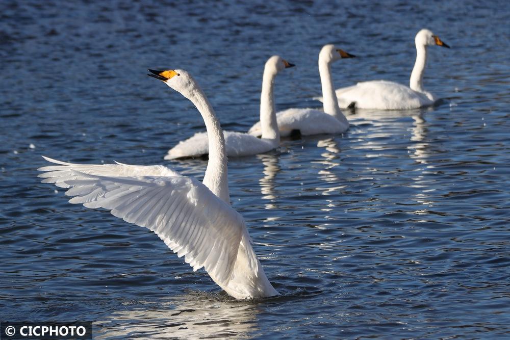 ↑2025年12月11日在辽宁省北票市红村天鹅湾拍摄的天鹅。CICPHOTO/白铁军 摄