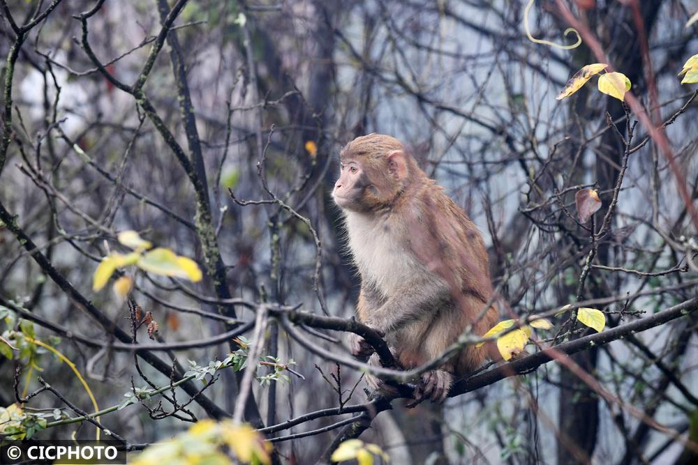 ↑2025年12月31日在贵州省仁怀市楠竹林公园拍摄的野生猕猴。CICPHOTO/陈勇 摄