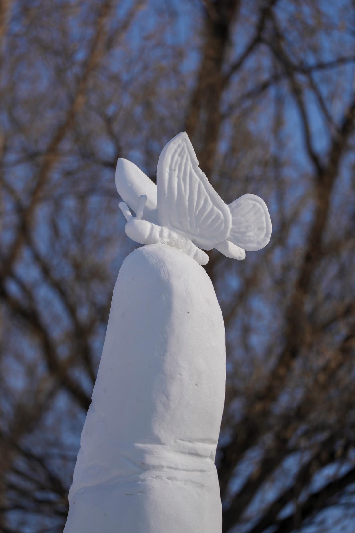 1月9日拍摄的俄罗斯特罗伊茨克队雪雕作品《生命家园》局部。新华社记者 王建威 摄