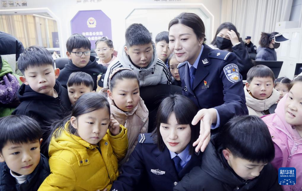 1月10日,河南省洛阳市汝阳县公安局举行“警营开放日”活动,警察子女在110指挥中心参观。
