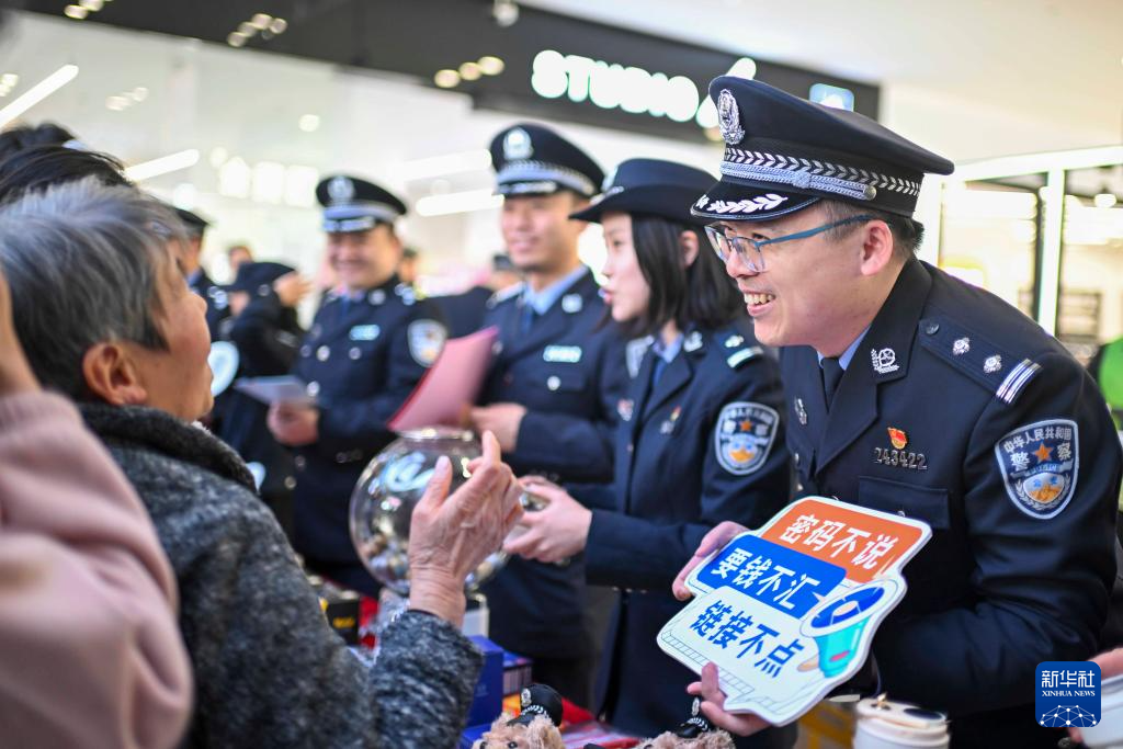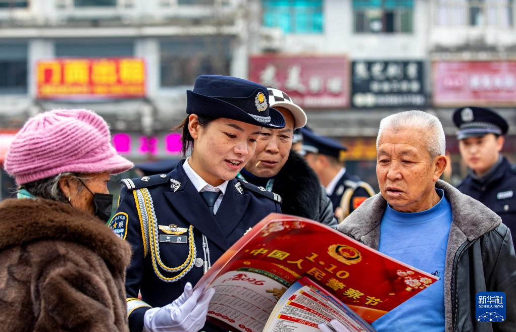 1月10日,警察在贵州省黔西市水西广场为市民宣传防电信诈骗知识。