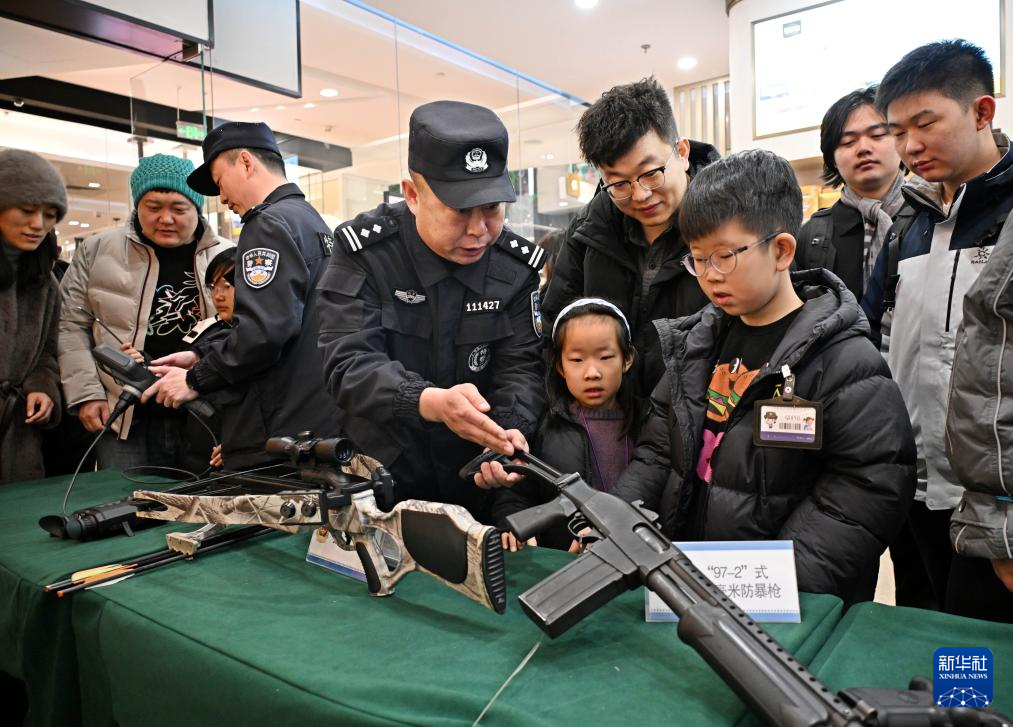 1月10日,在河北省石家庄市河北博物院广场,民警在迎接警察节主题活动中为市民展示警用装备。