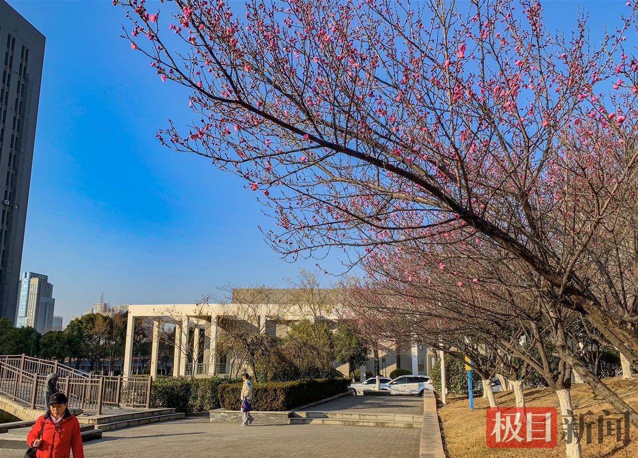 连日来,武汉迎来一波“超级暖冬”。2026年1月13日,武汉最高气温冲到20℃,多地的红梅已经盛放。据园林部门称,事实上从1月6日开始,长江流域的杭州、南京、武汉、重庆等地的红梅居然比往年早了整整一个月。位于光谷流芳的武汉工程大学校园内,红梅正在次第开放,清冽幽香在空气中浮动,给学子们的校园生活带来了一份冬日限定的雅致。
