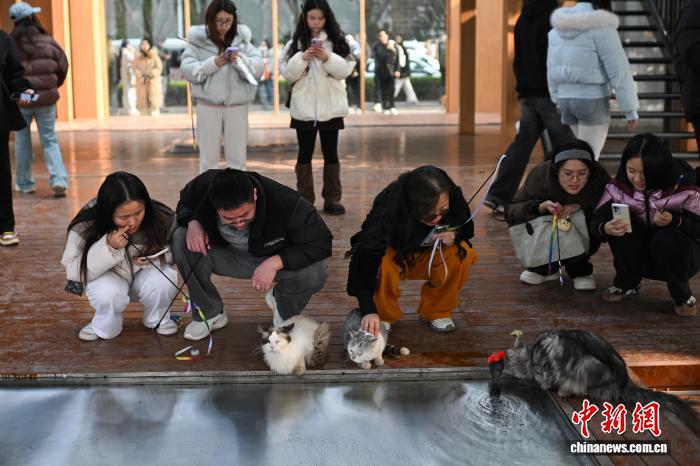 1月13日,游客在重庆萤火虫港湾猫猫主题乐园与猫咪互动。 中新社记者何蓬磊摄