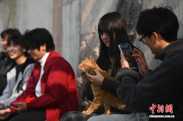 1月13日,游客在重庆萤火虫港湾猫猫主题乐园与猫咪玩耍。 中新社记者何蓬磊摄