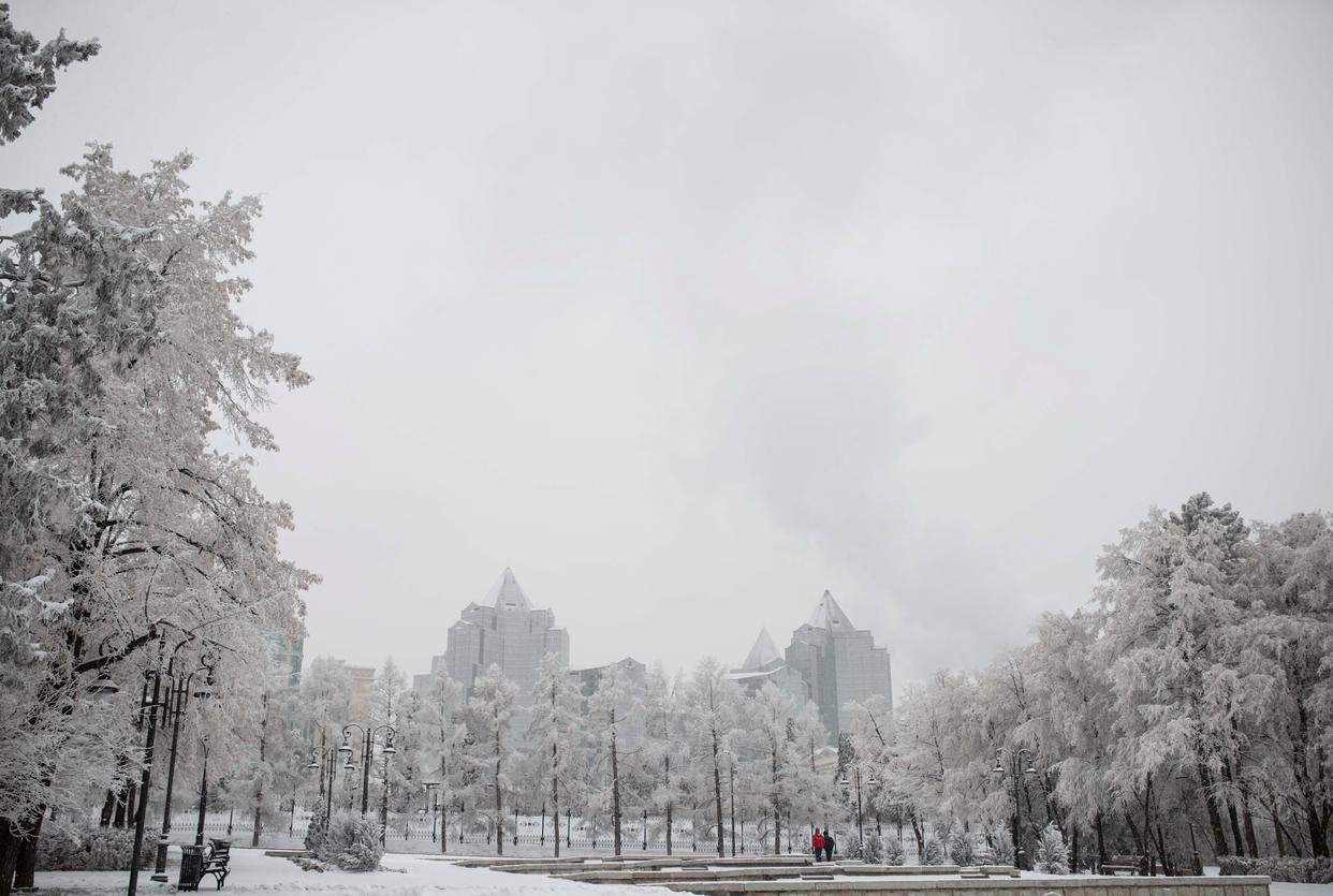 哈萨克斯坦第一大城市阿拉木图16日迎来持续性降雪天气。