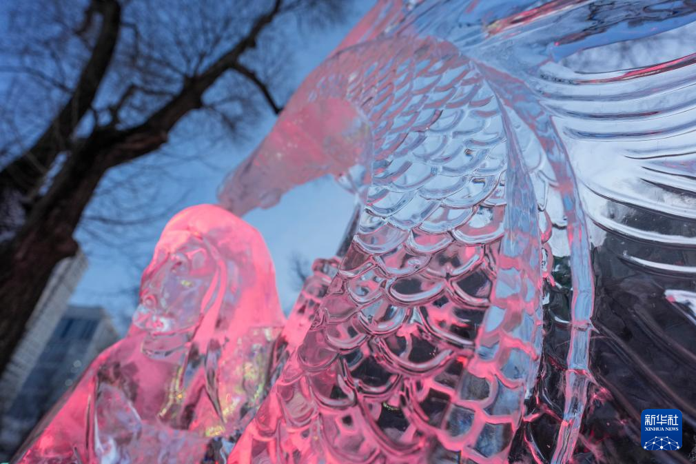 这是在哈尔滨市兆麟公园举办的第52届哈尔滨冰灯艺术游园会上展出的冰雕作品(1月14日摄)。