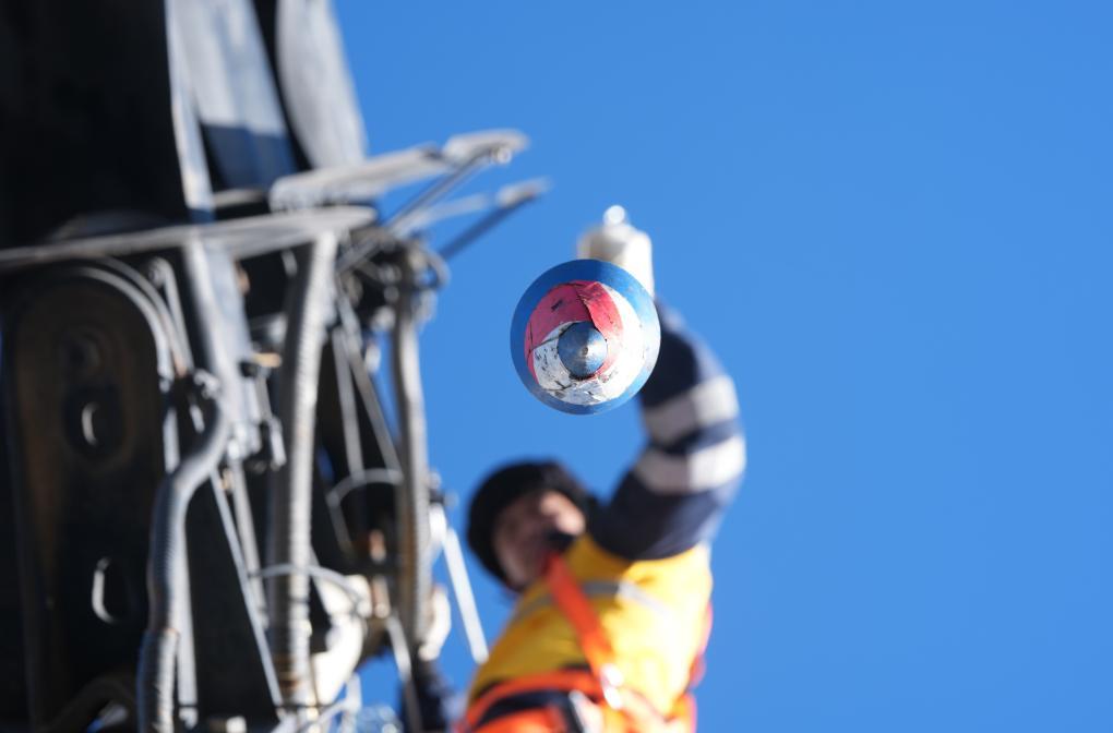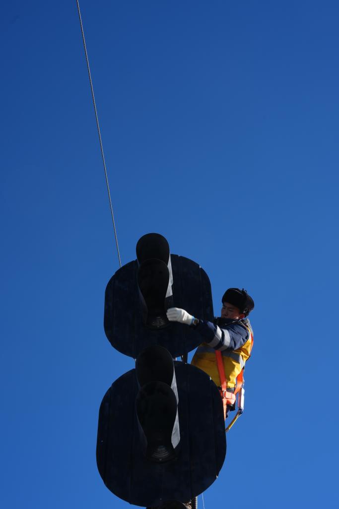 信号工孙伟在哈尔盖信号车间哈尔盖信号工区青海湖站测量信号机的限界。