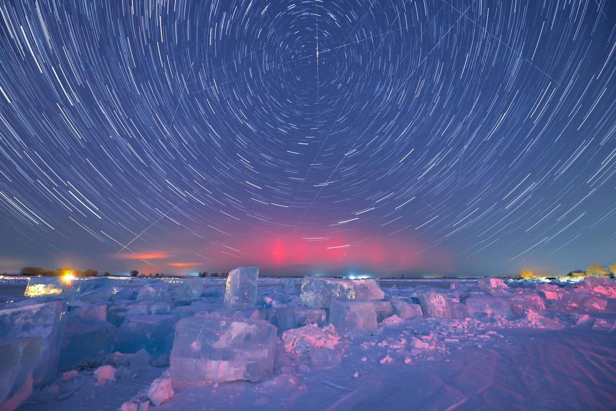 1月20日在黑龙江省齐齐哈尔市拍摄的绚丽极光(堆栈合成照片)。新华社发(王勇刚摄)1月20日