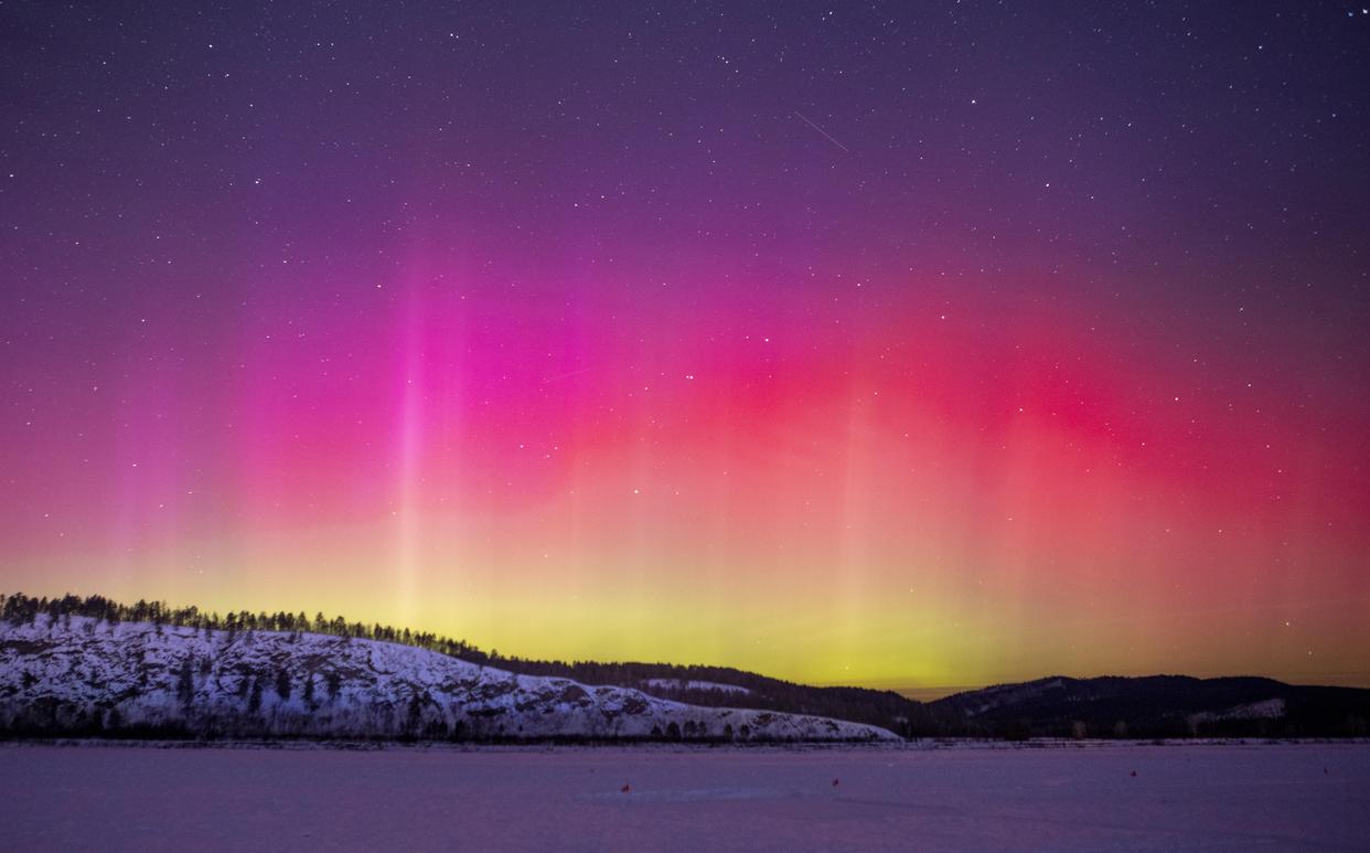1月20日在黑龙江省漠河市北极村拍摄的绚丽极光。新华社发(邵天李摄)