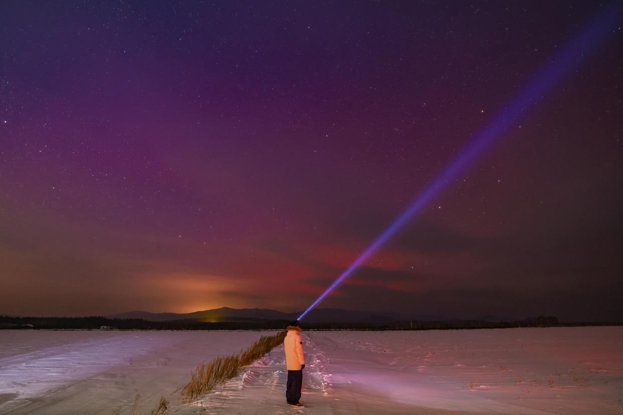 1月20日,在黑龙江省齐齐哈尔市,摄影爱好者在拍摄绚丽极光。新华社发(王勇刚摄)